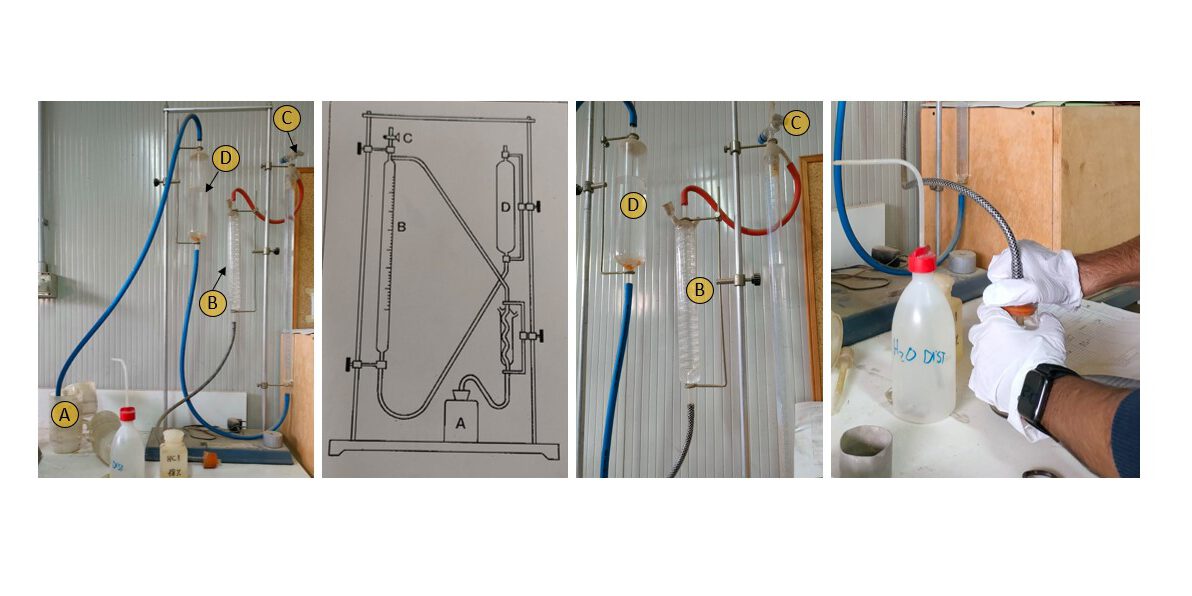 Il Calcimetro di Fruling Dietrich è costituito da una boccia denominata “A”, il cui tappo è attraversato da un tubo collegato a un refrigerante verticale chiamato “C” (Fig.1).
